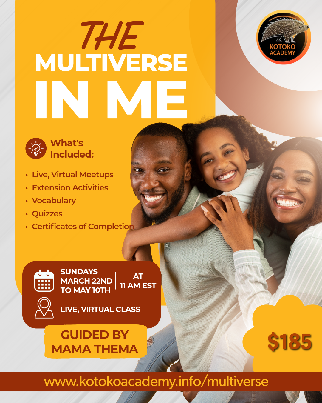 The Multiverse in Me is remembering Our Sacred Verse. In this course, we weave together the Universal, Spiritual, Soulful, Ancestral, Cultural, and Physical aspects of the Self. Guided in the Ancestral Wisdom of Alkebulan (Afrikan) Spirituality, this is a call for you and your family to remember and embrace the power of BEing.